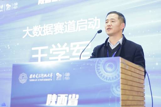 陕西天行健车联网信息技术有限公司王学军总经理为本次竞赛启动大数据赛道,对天行健公司的历史使命、技术合作进行了介绍,阐述了天行健对大数据的具体理解,并对参赛学生提出了殷切期望。