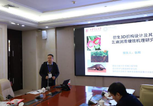 下午大会分两个会场进行。陕西汉德车桥有限公司王怡枫作了题为“商用车车桥发展趋势及摩擦学问题”的报告,西安航天精密机电研究所董红卫作了题为“航天设备摩擦学问题”的报告;兰州化学物理研究所王鹏作了题为“核辐射环境下的摩擦磨损与润滑”的报告,西北大学吕晋军作了题为“松香的材料与摩擦学特性”的报告、西安交通大学张辉作了题为“仿生3D织构设计及其乏油润滑增效机理研究”的报告、李烨飞作了题为“陶瓷-钢铁耐磨表层复合材料界面设计与制备技术”和何万军作了题为“油盐水乳化液条件下M50轴承钢腐蚀磨损行为及机理分析”的报告;西北工业大学周青作了题为“非晶及高熵合金的摩擦磨损性能研究”的报告、王琳作了题为“人字齿轮传动系统及其支撑轴颈轴承高效润滑与传热研究” 的报告、史俊勤作了题为“有机润滑添加剂吸附行为研究”的报告、肖立作了题为“航空浮动花键磨损机理分析及抗磨损优化设计”的报告、佟瑞庭作了题为“考虑空间颤振碰撞的纳观滑动接触问题研究”的报告和吴正海作了题为“滚子轴承滚动体表面轮廓修形技术研究”的报告;西安理工大学张东亚作了题为“液压马达连杆副复合耐磨表面设计及性能研究”的报告、陕西科技大学李永作了题为“碳纤维复合材料的界面改性及其摩擦学性能研究” 的报告和辛华作了题为“基于骨肌多体动力学的人工关节体外磨损仿真”的报告;西安建筑科技大学王文作了题为“搅拌摩擦技术在连接与制备加工中的应用”的报告,西安石油大学李万钟作了题为“仿生表面摩擦学在石油钻采设备领域的应用”,宝鸡文理学院罗海棠作了题为“耐高温复合磺酸钙基润滑脂的摩擦学性能及在连铸机上的应