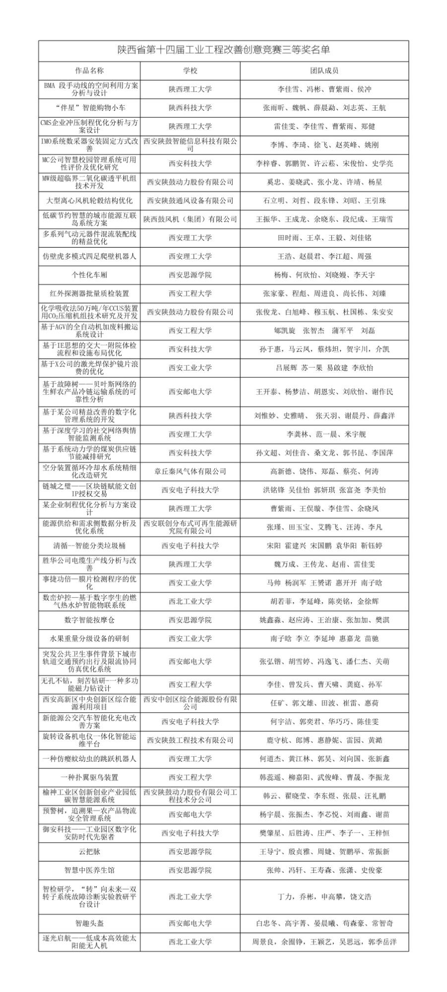 附件3:陕西省第十四届工业工程改善创意竞赛三等奖名单